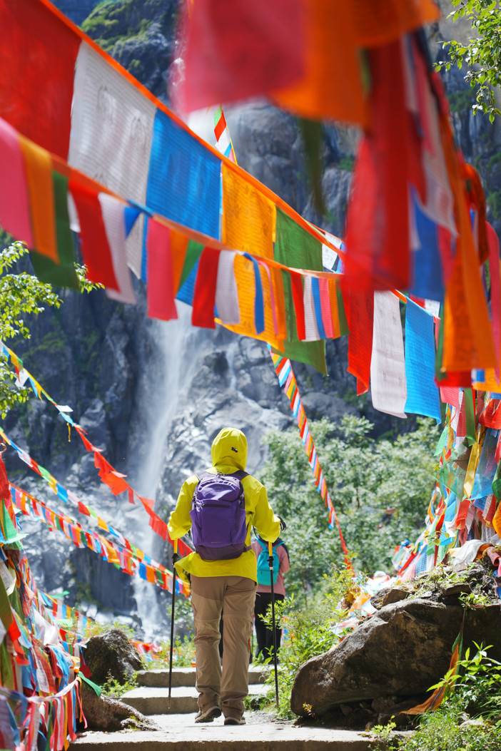 这里可以观看神女峰和五冠峰的全貌,更重要的是这里是朝圣者接受洗礼的地方,只有接受过神水的洗礼,整个朝圣之旅才算是完整,身体和心灵都得到净化,而后我们将原路返回雨崩村客栈休息。