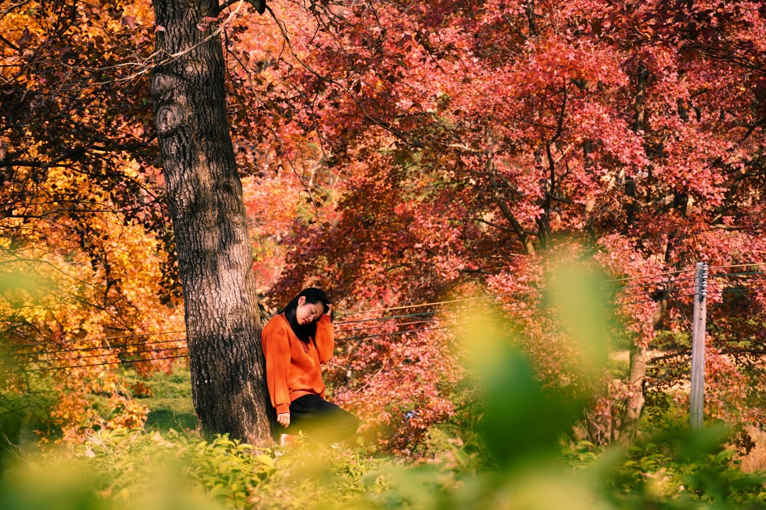 田野山涧,嬉戏的人儿会被枫叶亲吻,