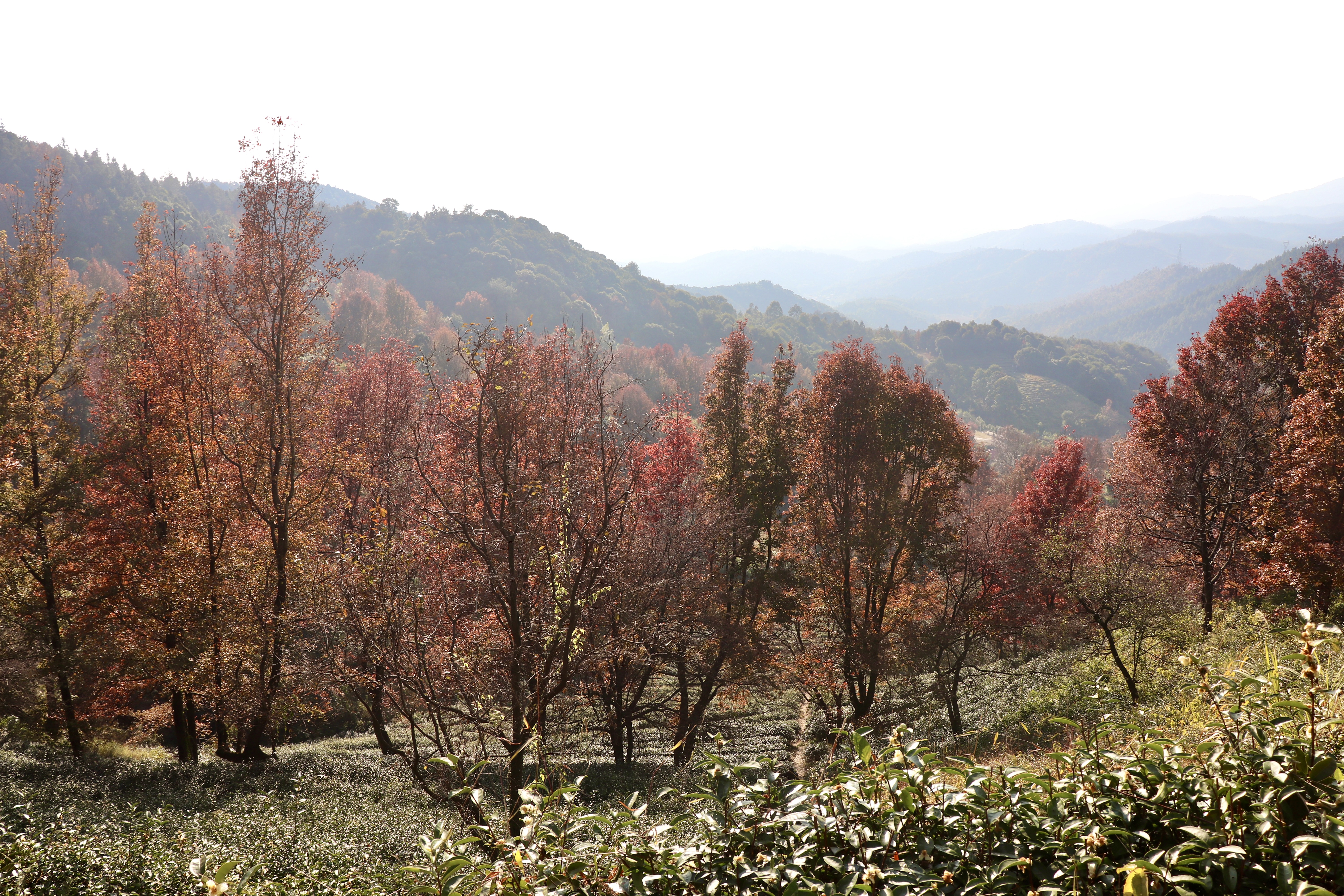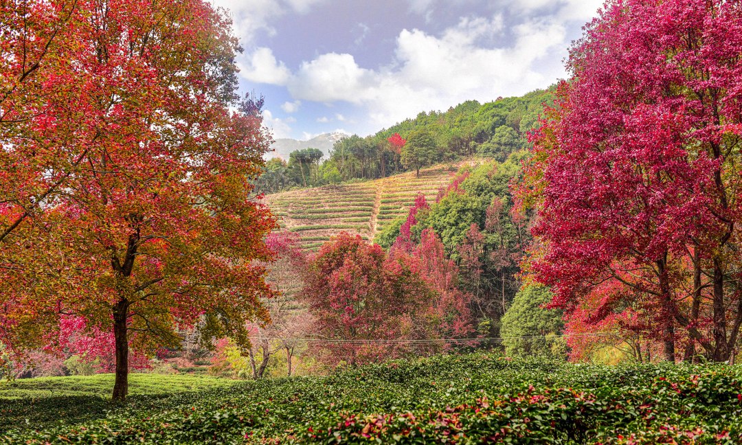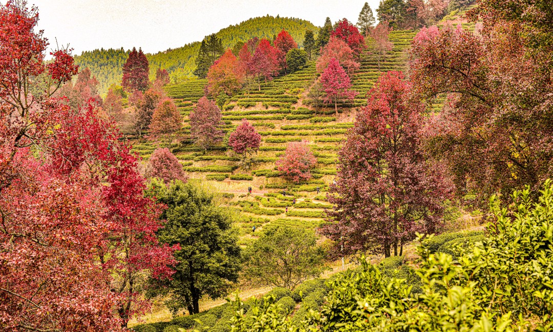 这里枫林和茶园相互映衬