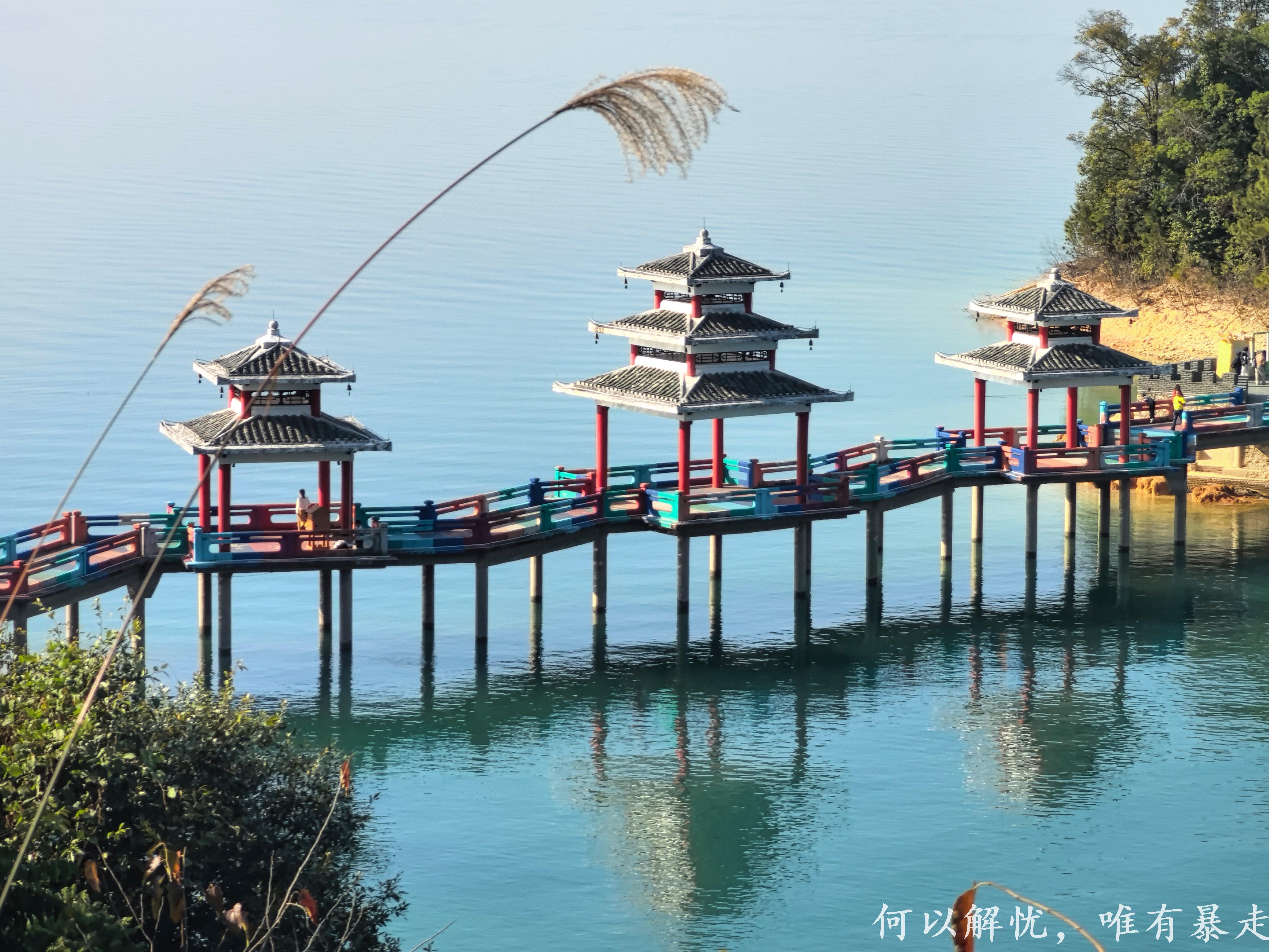 亮点3、【湖岸栈道漫步】沿湖修建的徒步栈道平坦舒适,一边是波光粼粼的湖面,一边是郁郁葱葱的山林,微风拂面超惬意。