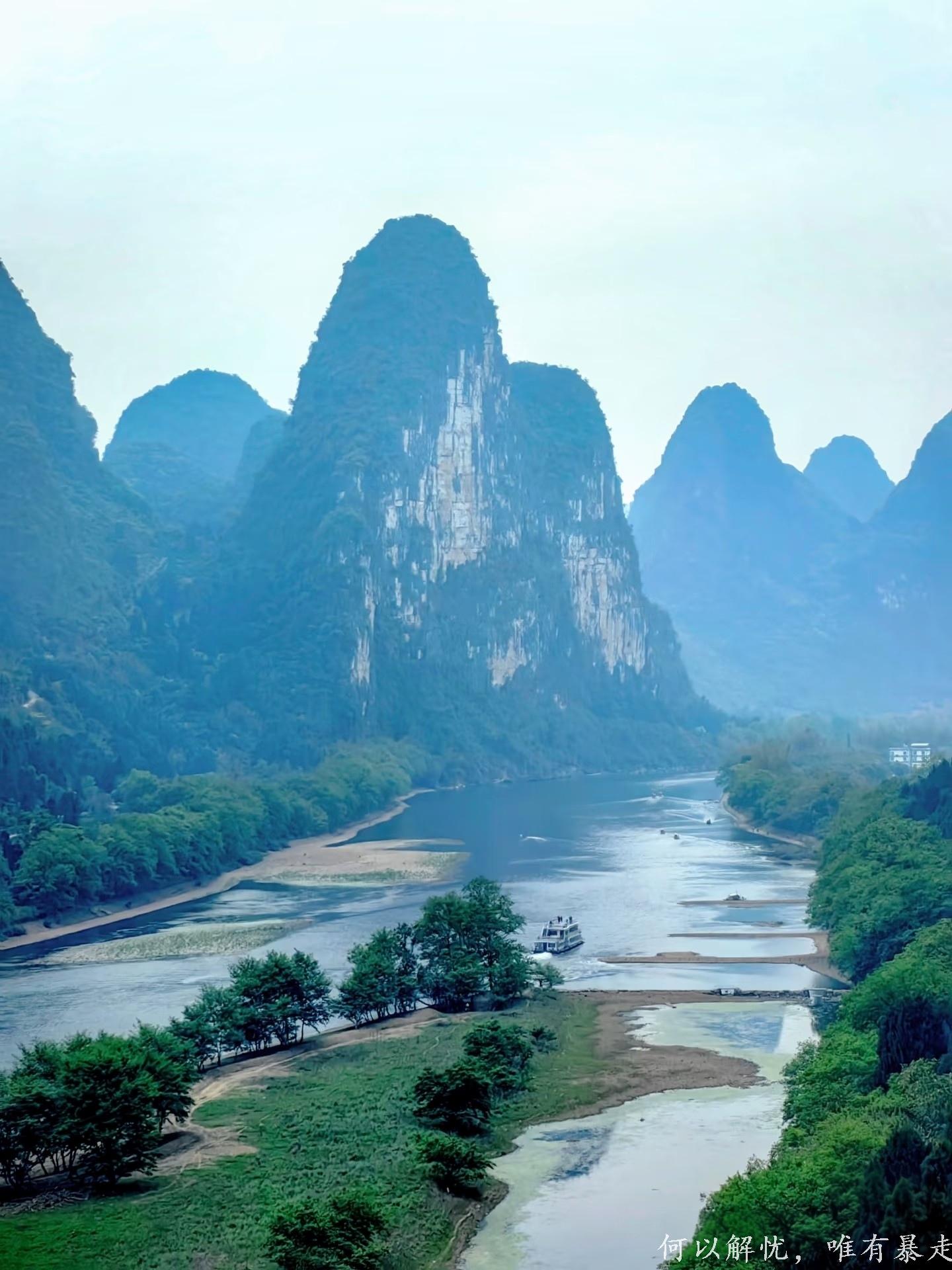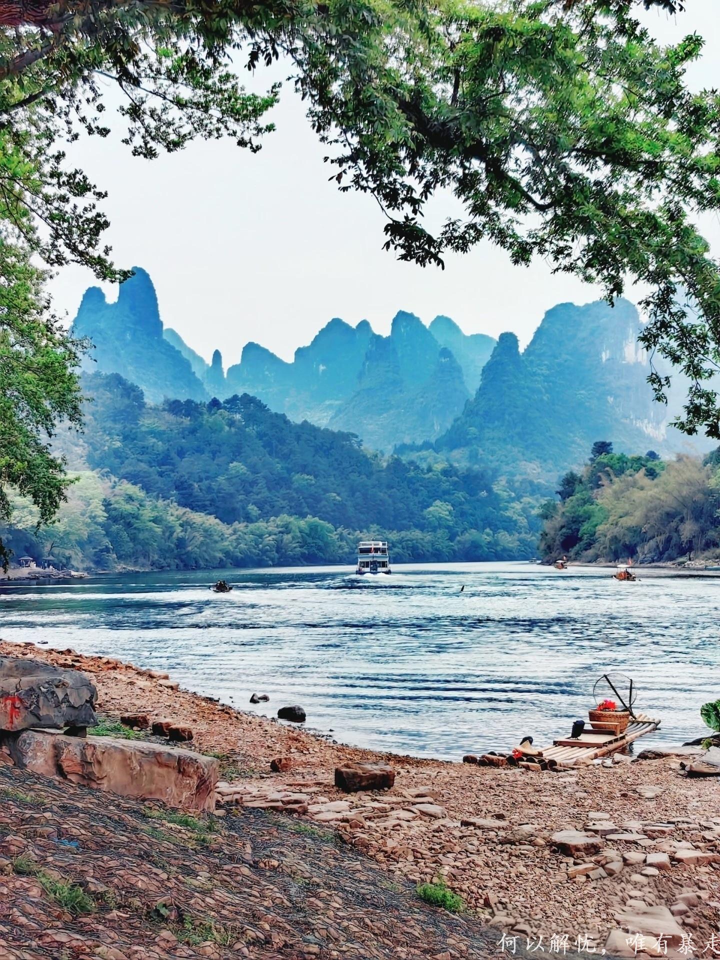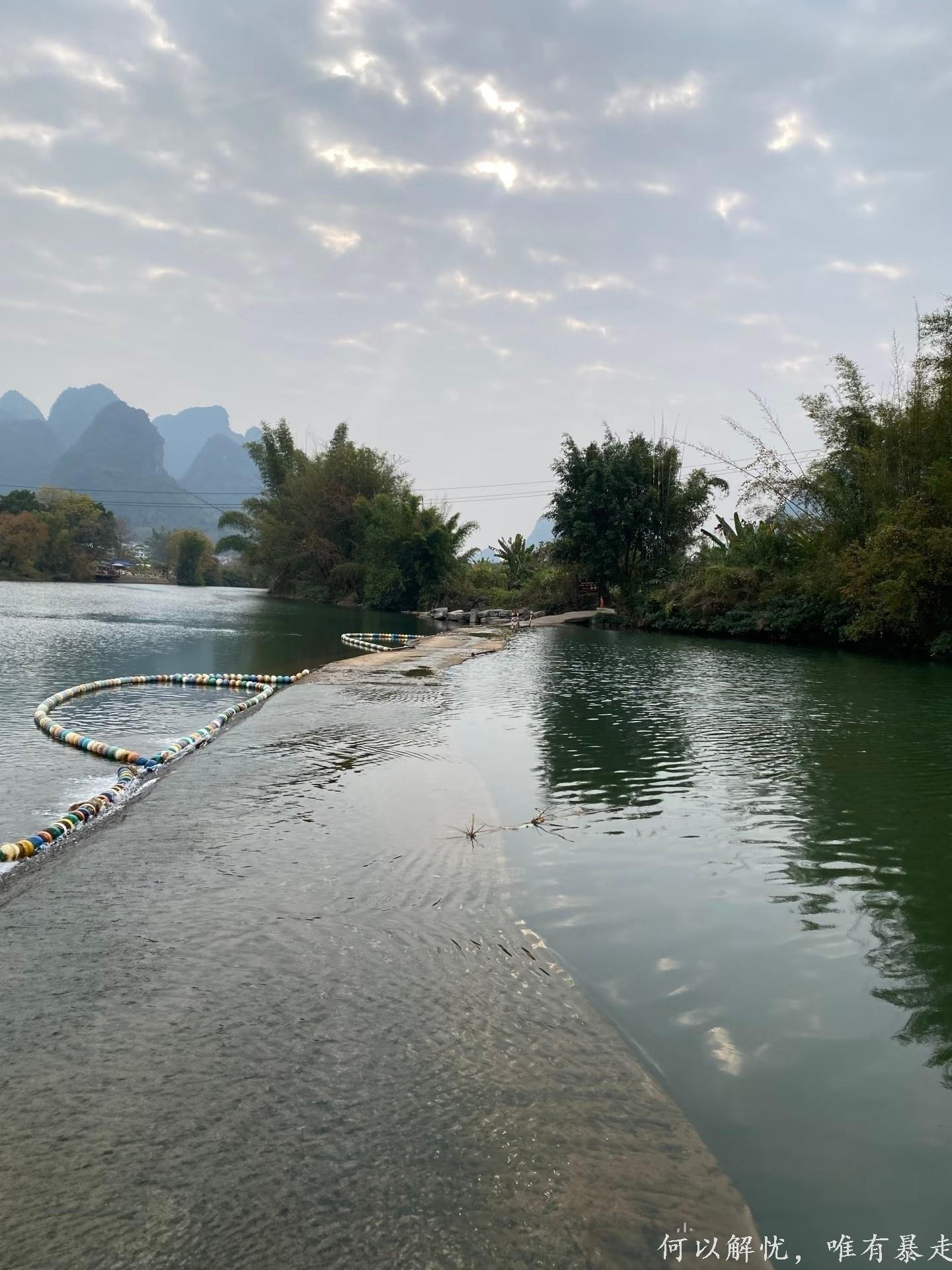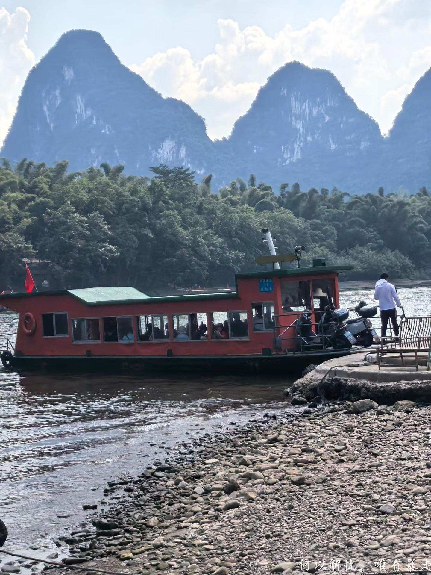 07:00起床,7:30出发上车前往杨堤码头徒步漓江。9:30到达杨堤码头,坐船三次轮渡(杨堤码头,全家州,冷水渡,坐船平时5元,节假会有变动)。沿途风景有黄布倒影,九马画山。20元人民币打卡点,兴评古镇等。