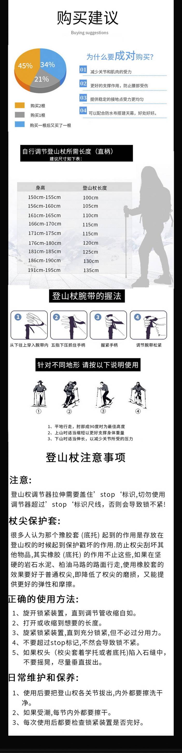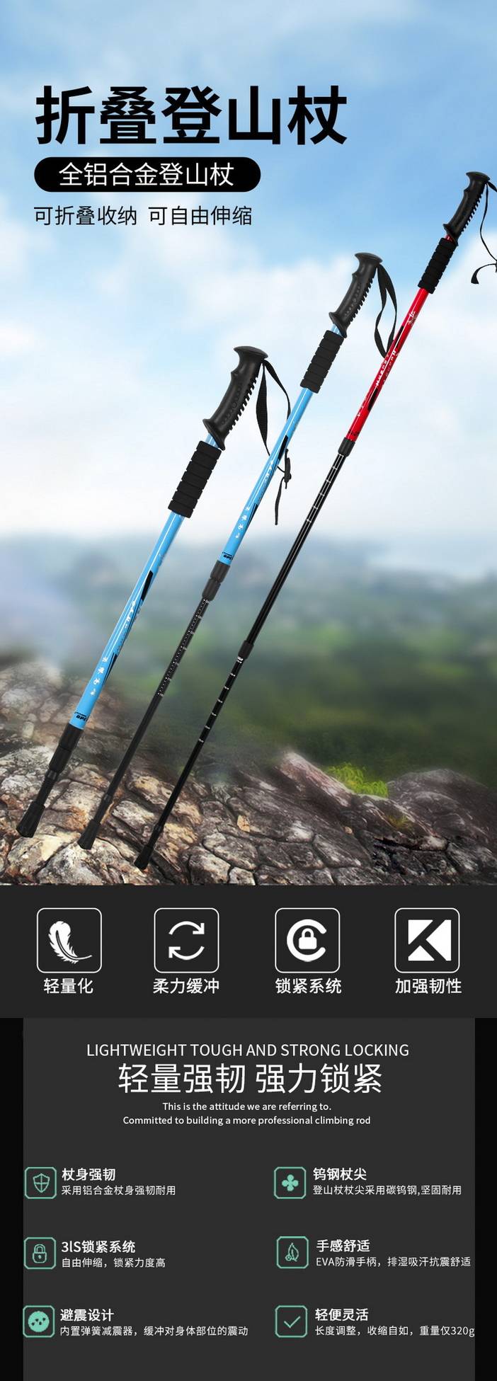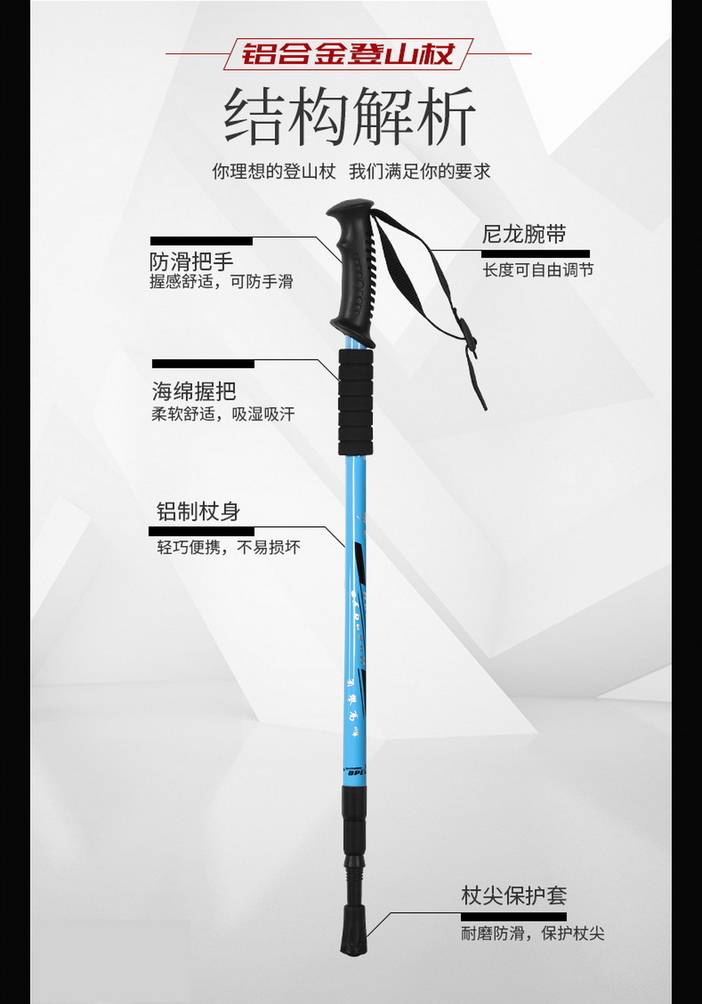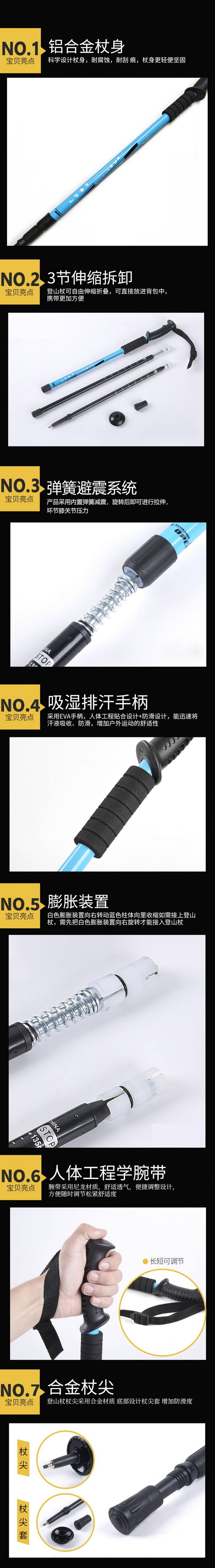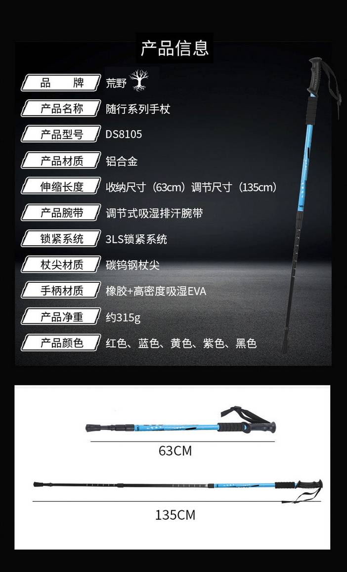 荒野6061铝合金登山杖三节伸缩直柄户外旅游手杖徒步杖泥托钨钢杖尖适应全地形DS8105 [复制链接]