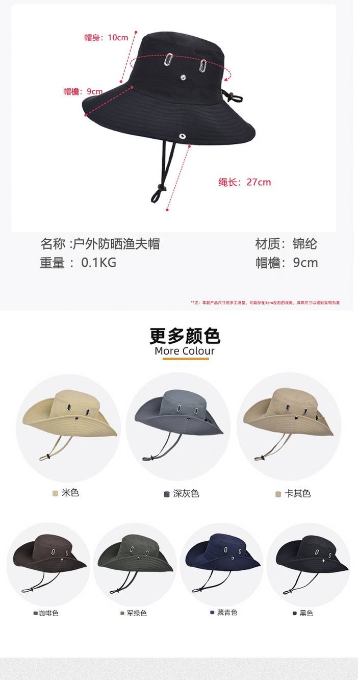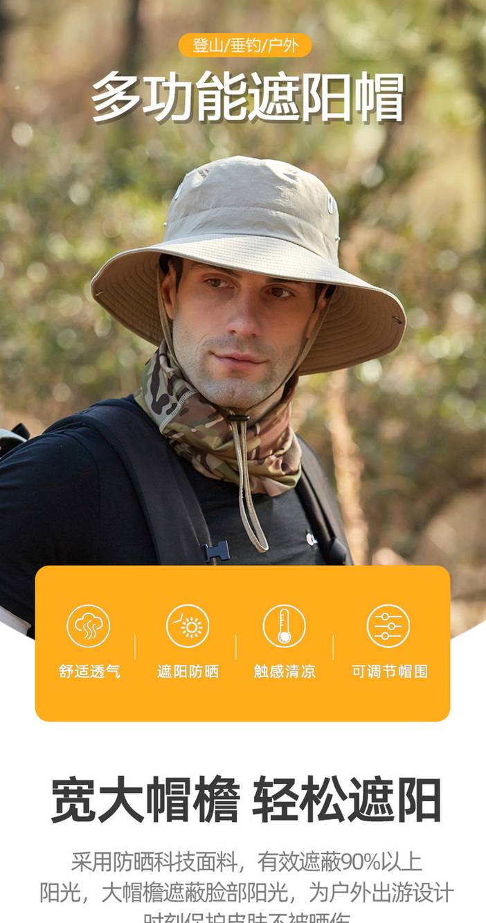 荒野户外遮阳帽渔夫帽徒步帽子防晒透气纯色宽大帽檐男女同款登山露营钓鱼露营旅游 [复制链接]